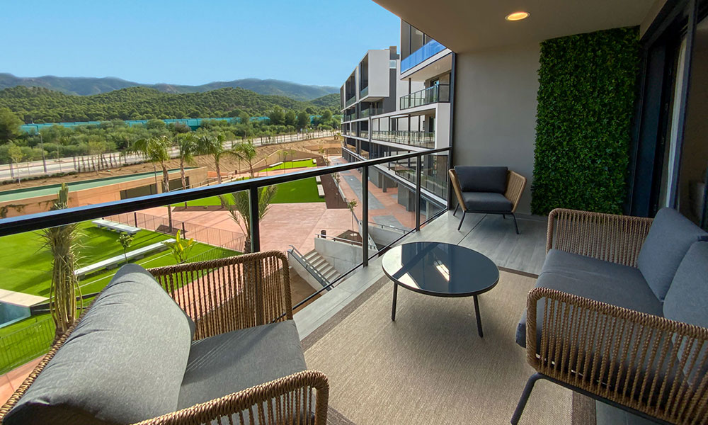 Espectacular piso de 4 dormitorios y 2 baños en esquina con más de 190 m2 construidos. Vivienda de doble orientación con zona de día y noche perfectamente identificadas. Una amplia cocina con lavadero y un gran salón de casi 40 m2, se ubican en la zona de día. El dormitorio principal, de doble orientación, totalmente exterior, dispone de un espacioso baño en suite y un generoso vestidor. Una espectacular terraza de más de 32 m2 rodea toda la vivienda y ofrece unas magníficas vistas al monte, a la piscina y a los jardines comunes.